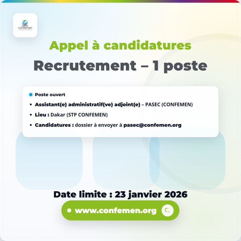 📩 Dépôt des candidatures : pasec@confemen.org